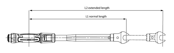 Where L1 is the normal length and L2 is the extended length, M1 is the set torque and M2 the actual torque applied to the nut.