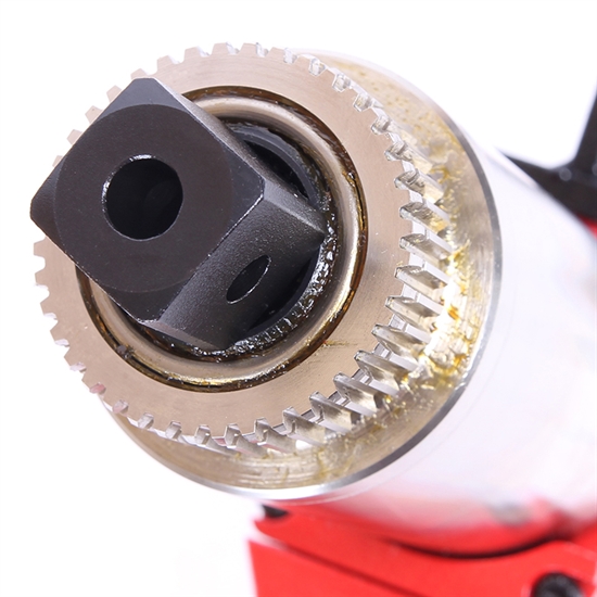 For safety, gearbox can rotate independently from the handle so that reaction forces are not transmitted back to the operator.